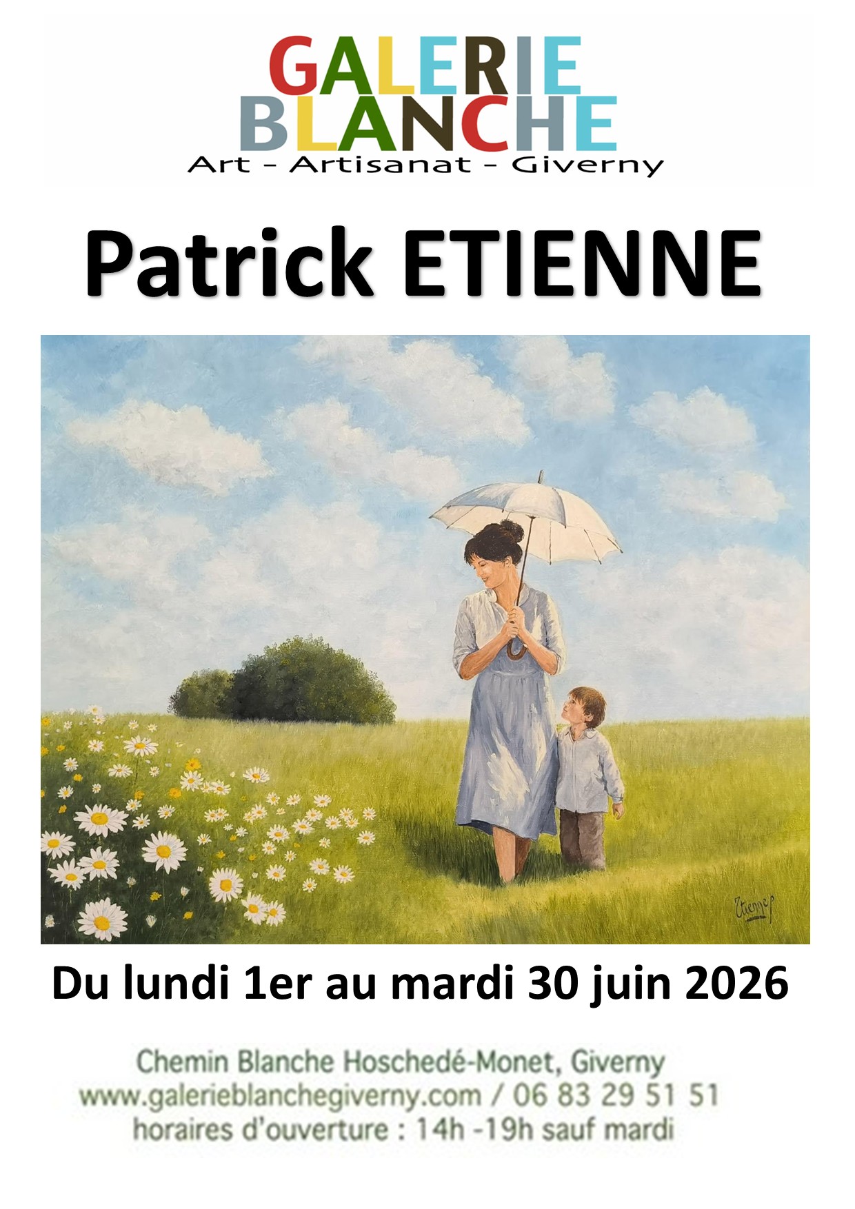 La Galerie Blanche, située au cœur de Giverny, a le plaisir d’accueillir en juin 2026 une exposition exceptionnelle consacrée au peintre Patrick Étienne. Né dans l’Orne, Patrick Étienne est un artiste passionné, reconnu pour son regard sensible et poétique sur les paysages normands, notamment la côte de Nacre, ainsi que pour ses compositions riches en couleurs et en émotions.