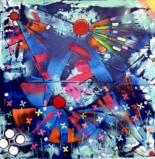 « Explosion florale » 100x100cm sur châssis technique mixte 650€