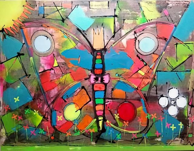 Javelot de cupidon, 100x100cm technique mixte sur châssis 650€