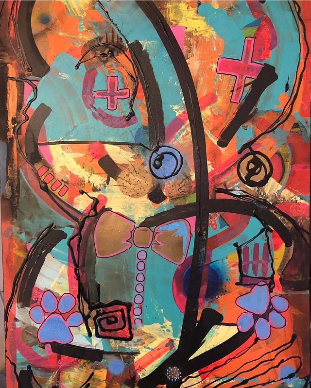 Vibrations cantique, techniques mixtes sur bois 60x80cm 400€
