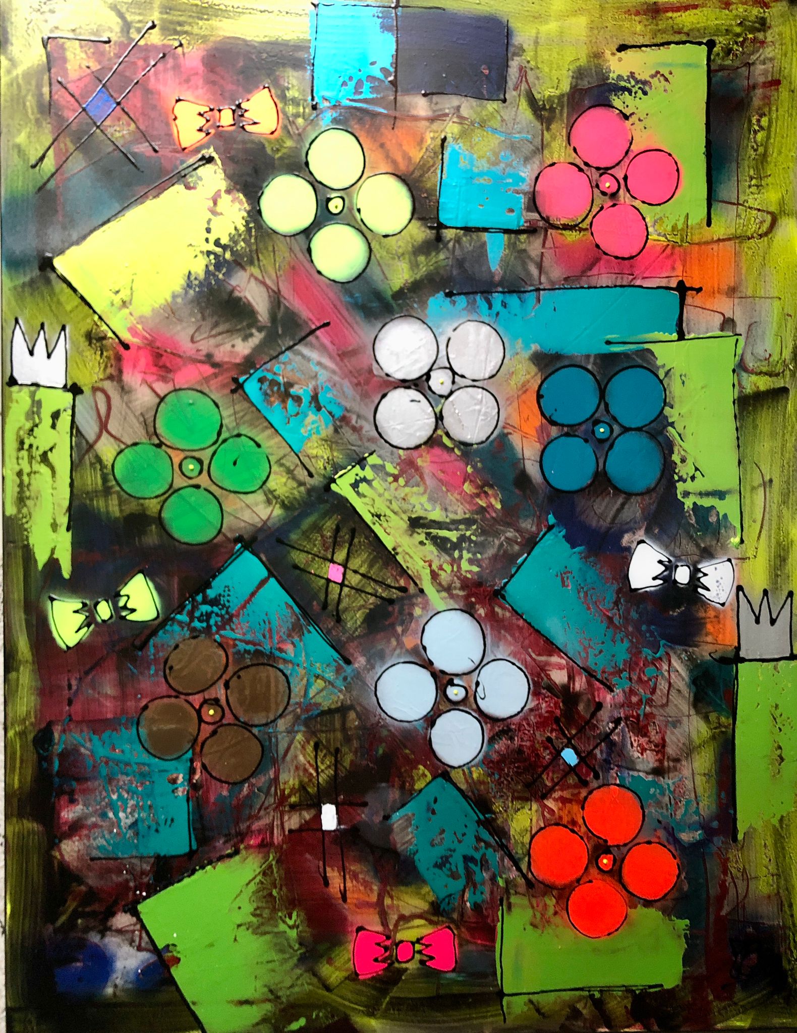 Le tableau intitulé "Checkmate" représente une scène vibrante et dynamique sur un échiquier où deux rois se font face, capturant l’intensité d’une partie décisive. À travers l’utilisation de la technique mixte, l’artiste mélange peinture acrylique et éléments texturés, créant une composition riche en couleurs audacieuses et contrastées. Les teintes vives symbolisent l’énergie et la tension de la confrontation, tandis que les rois, placés stratégiquement, incarnent le jeu de pouvoir et de réflexion. Ce tableau explore à la fois la beauté du jeu d’échecs et la lutte intérieure qu’il suscite.