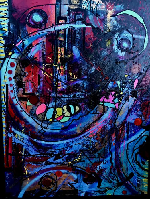 Burning Burn est une œuvre saisissante réalisée en acrylique et technique mixte, où le bleu profond domine la composition, symbolisant à la fois la calme et la turbulence. Des éclats de rouge viennent percuter ce bleu intense, apportant une tension palpable, comme une flamme qui brûle sans relâche. Ce contraste puissant entre les teintes froides et chaudes évoque un sentiment de lutte intérieure, un combat entre l’apaisement et la passion dévorante, créant ainsi une dynamique émotionnelle forte et captivante.