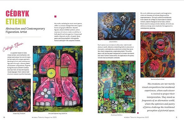 Son travail célèbre la spontanéité et l’imagination, où l’art devient un terrain de jeu infini pour l’expérimentation. À travers de nombreuses expositions, de la Galerie de la Plage à Ouistreham à la Galerie CréArts et la Galerie Passage à l’Art à Caen, Cédryk Etienn affirme une identité artistique unique, portée par une énergie contagieuse et une approche résolument libre de la peinture contemporaine.